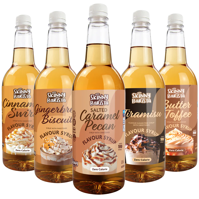 Elevate your drinks and desserts, featuring four irresistible flavours: French Vanilla, Gingerbread, Hazelnut, and Salted Caramel.